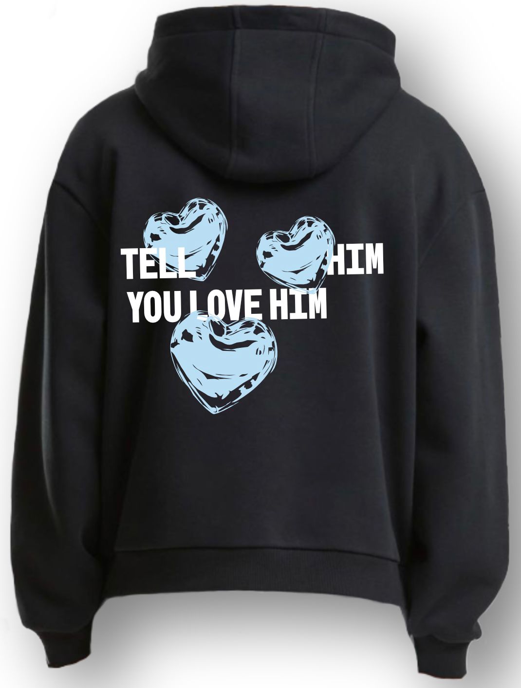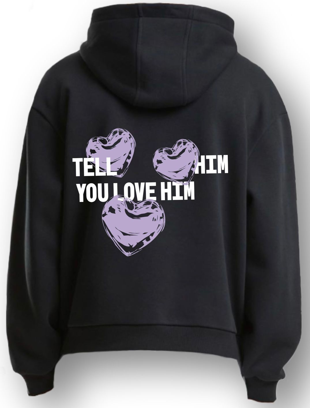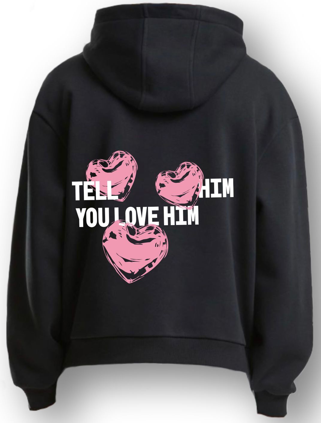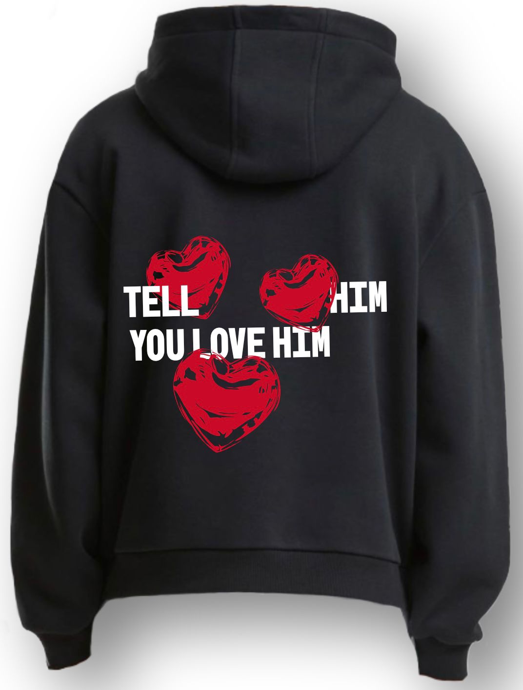 Das perfekte Liebesbekenntnis in Hoodie-Form. Mit drei roten Herzen und klarem Message: „Tell Him you love him“ – zeitlos, bequem und mit Charakter. Der schwarze Premium-Hoodie ist dein zuverlässiger Begleiter für jede Gelegenheit.